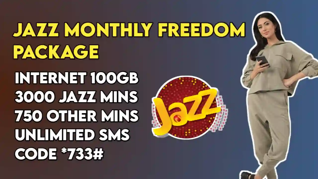Jazz Monthly Freedom Package 100GB is a comprehensive monthly offer that provides 100GB high-speed internet data, 3000 Jazz-to-Jazz minutes, 750 other network minutes, and unlimited SMS for Rs. 2,173 per month.