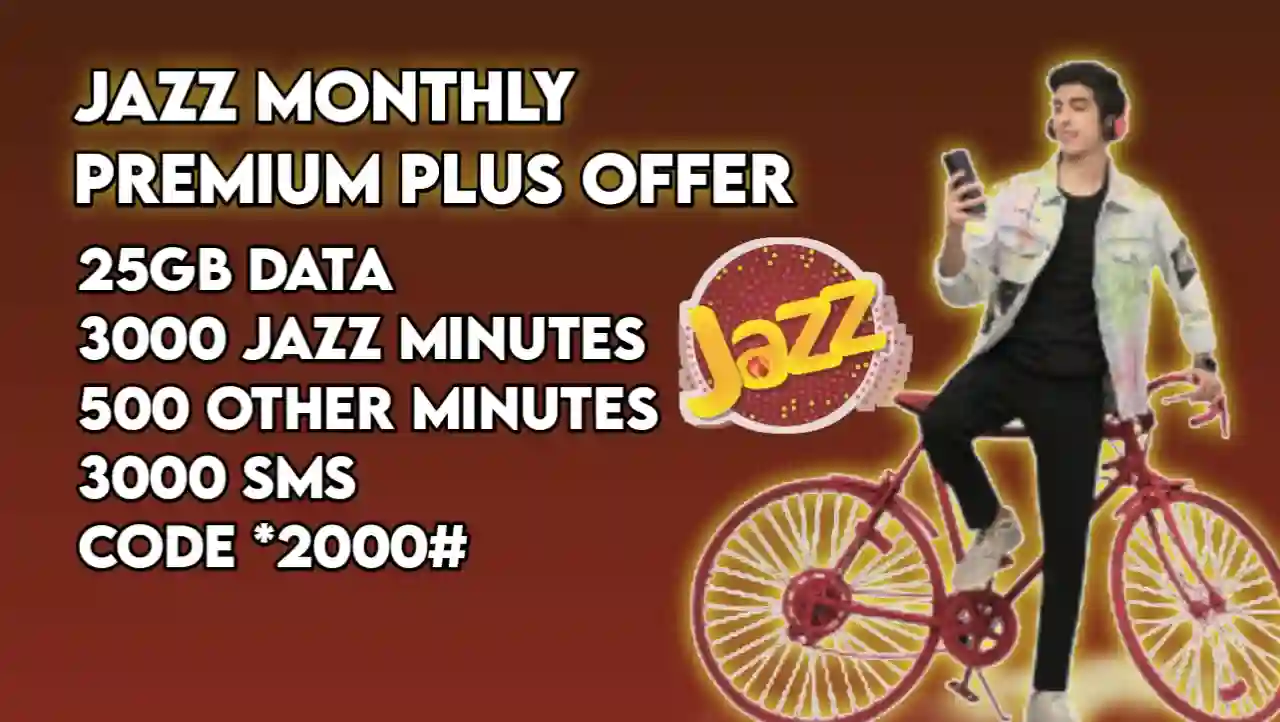 Jazz Monthly Premium Plus Offer is a comprehensive monthly package that provides 25GB data, 3000 Jazz minutes, 500 other network minutes, and 3000 SMS for Rs.1565 including taxes. It’s designed for heavy users who need substantial data and calling benefits.